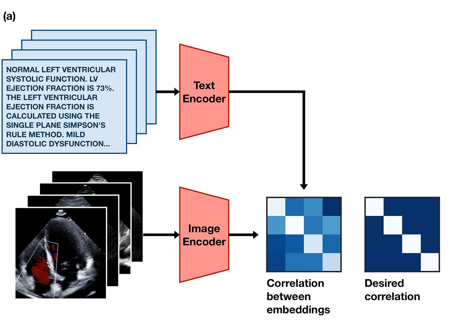 Okay, let’s take inventory. We have access to millions of ultrasounds of people’s hearts, and hundreds of thousands of detailed reports which describe the contents of those videos. The reports essentially distill the most important features from the videos into a much more compact form. AI being my job and all, my immediate reaction to this inventory is to ask: